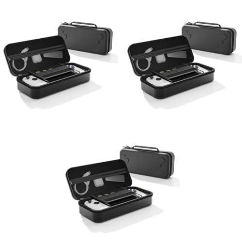 - POCKET FOR ACCESSORY STORAGE: Featuring a thoughtfully mesh pouch inside, the carry case allows you can keep your essential gaming accessories together. Internal soft partition, separate the game console to protect the screen from mutual friction. The pouch provide secure and convenient compartments for items like cables, chargers, earphones, and memory cards, ensuring that everything is neatly organized and easily accessible, you can carry your favorite games anywhere and anytime.