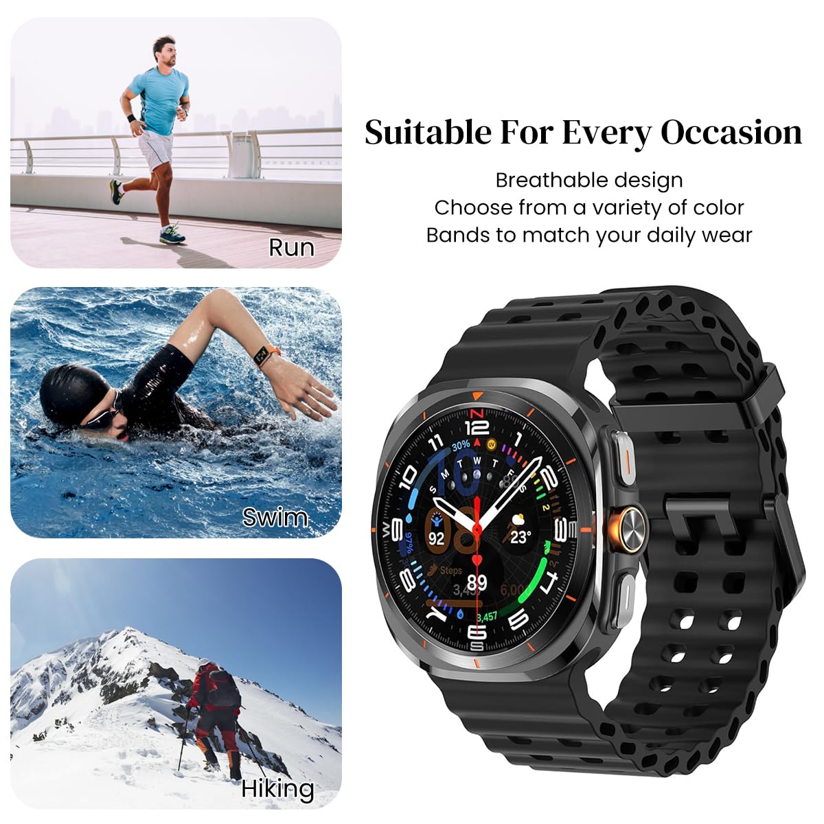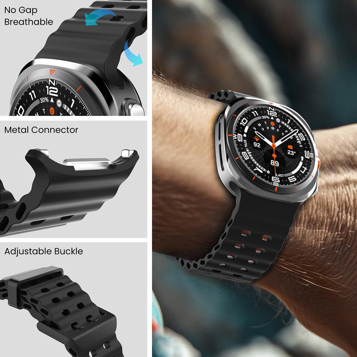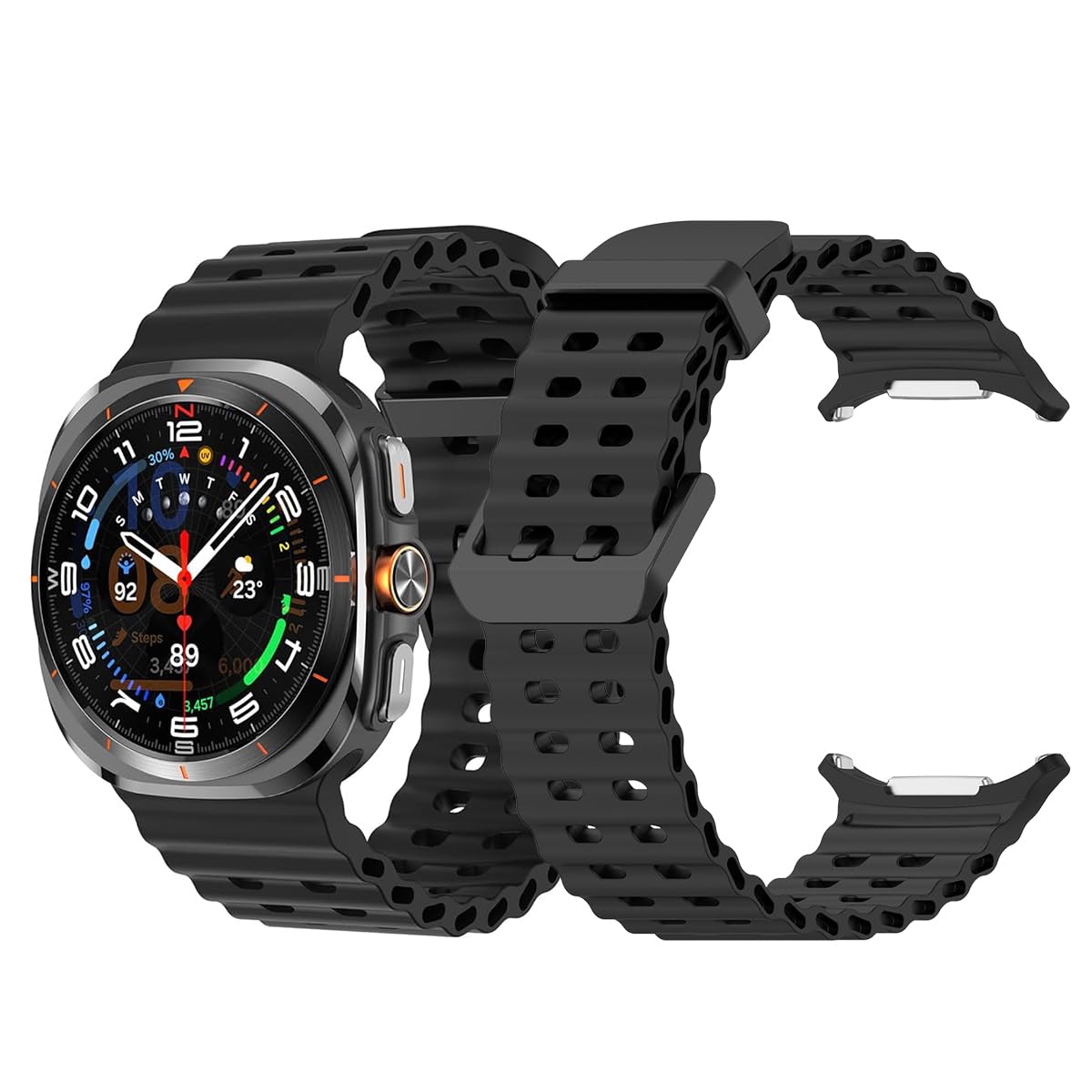 - PRECISELY FIT: The silicone watch band ensures a precisely tailored fit for your Samsung Galaxy Watch7 Ultra 47mm (2024). Whether you're in a high-intensity workout or an all-day work meeting, this band provides unparalleled snug fit.