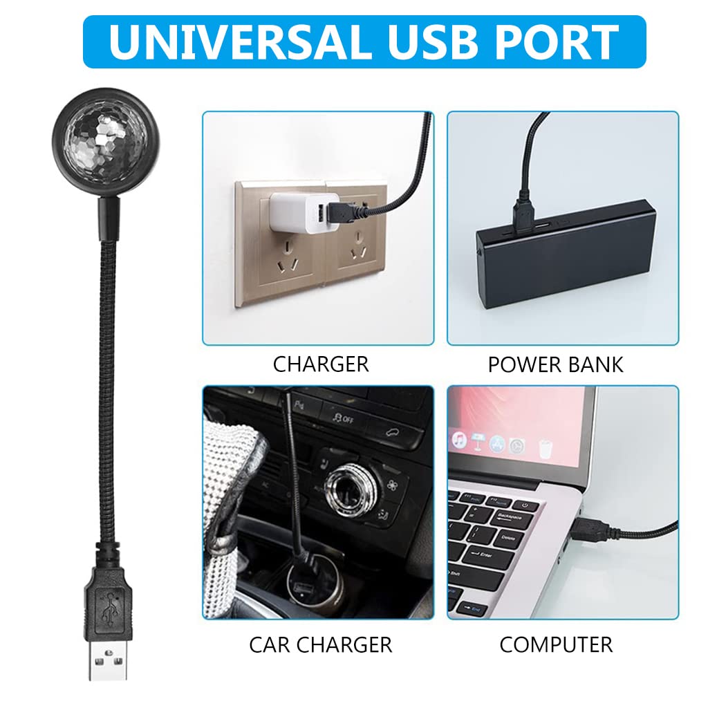 - MINI USB DISCO LIGHT FOR CAR: Greating a nice and joyful atmosphere for your car, this mini color ball light with multi color light beads, various dynamic modes with 360° rotation light effect, let your car become a party place immediately. USB light via built-in highly sensitive microphones that flash in the rhythm of sound or music and change the lights, creating a colourful atmosphere. Simply turn the top of the starlight and your room or car interior will be completely different.