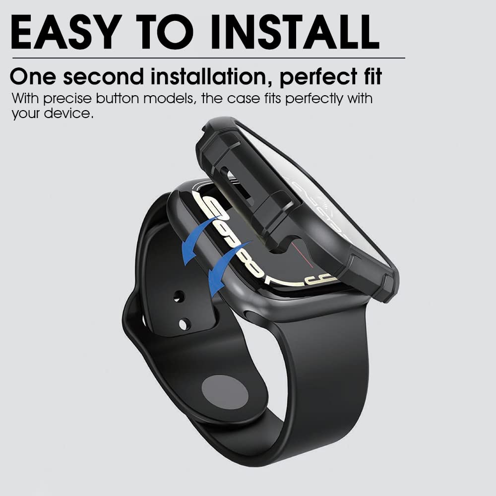 - ZORBES Hard Cover Compatible Apple Watch Series 7, Hard Case 41mm Case with Built-in Tempered Glass Screen Protector Protective Face Bumper Case Cover(Black) ZORBES Hard Cover Compatible Apple Watch Series 7, Hard Case 41mm Case with Built-in Tempered Glass Screen Protector Protective Face Bumper Case Cover(Black)