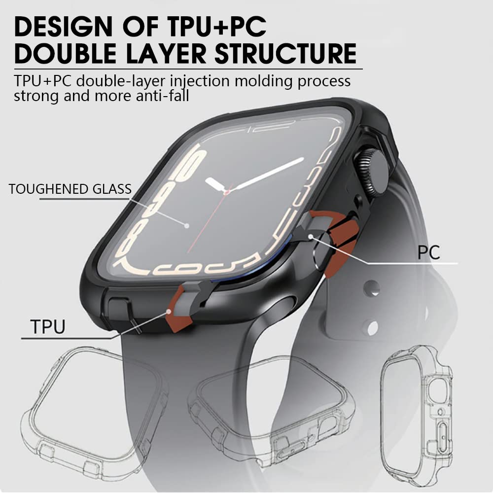 - Perfect Fit]--Designed for Apple Watch Series 7, 41mm. Made of PC+ tempered film, size: about 4.3*3.7*1.1mm.