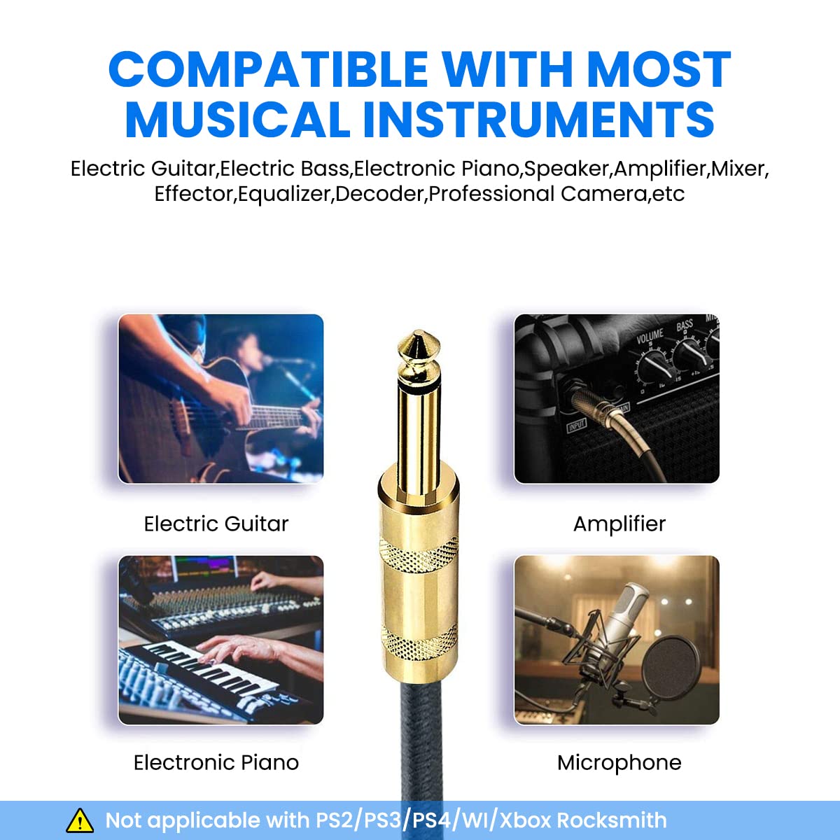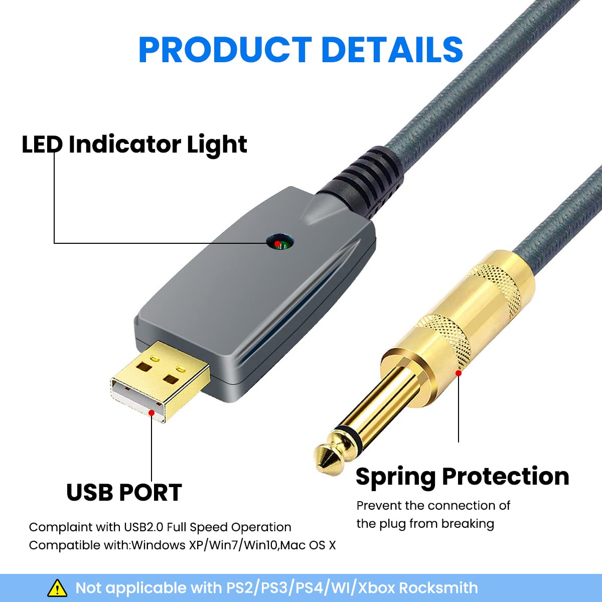- DURABLE:the usb guitar cable with 1.6PVC insulation material and the high-density stranded coppershield provide noise rejection for quiet operation,cotton woven mesh makes guitar cable strong enough.